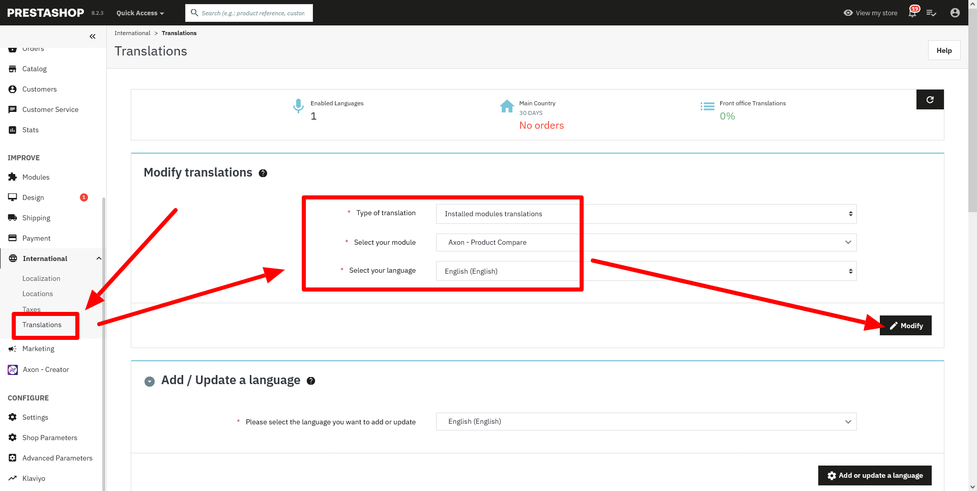 2. Where do I translate add to compare and go to whishlist